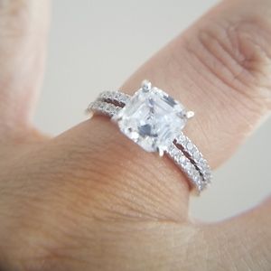 1ct Cushion Cut Engagement Ring Wedding Band 2pc Boutique