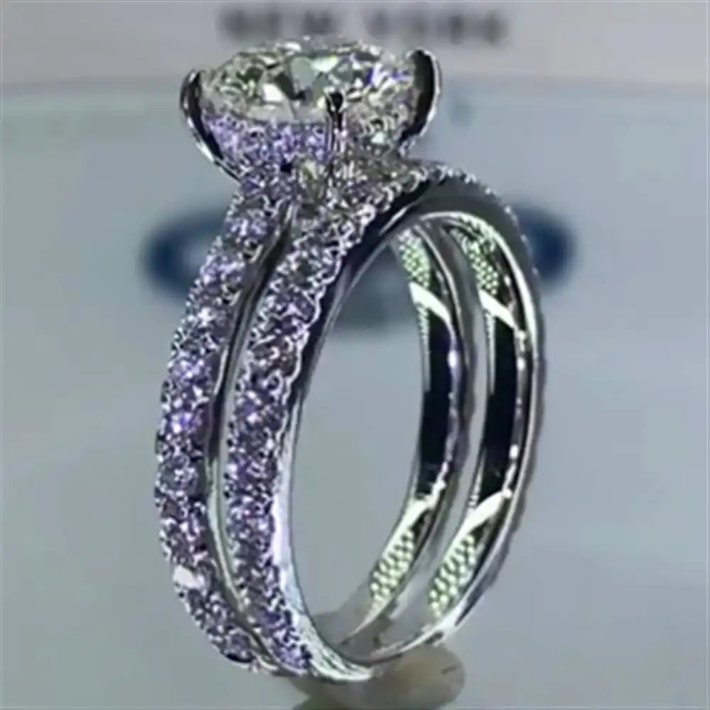 Cute Crystal Female Zircon Wedding Ring Set Boho Fashion 925 Silver Bridal Sets Jewelry Promise Love Engagement Rings For Women