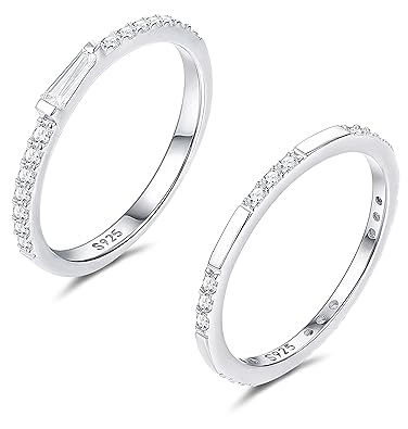 Funrun Jewelry 2 Pcs Sterling Silver Cubic Zirconia Thin Ring Set For Women Girls Cute Cz Stackable Knuckle Ring Women Wedding Jewelry Size 4 9