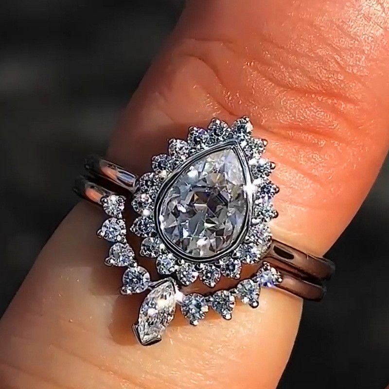 Fashion Cute Female Water Drop Wedding Ring Set Vintage 925 Silver Engagement Rings For Women Crystal Zircon Bridal Sets