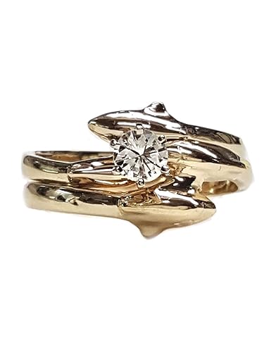 Amazon Com 2 Single Dolphin Wedding Rings In 14kt Gold Handmade