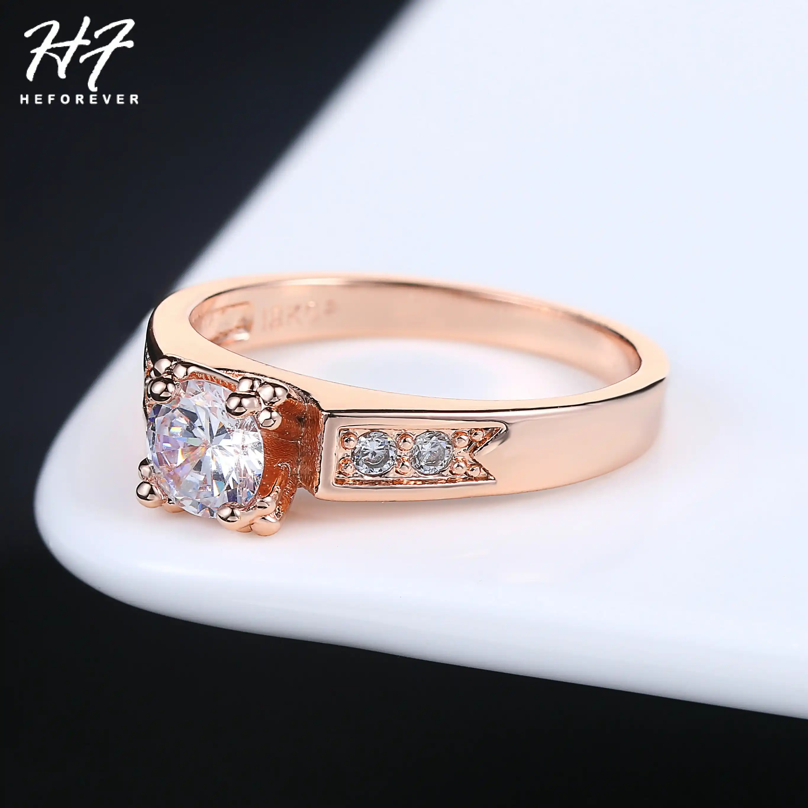6 Items Classical Cubic Zirconia Forever Wedding Rings For Women Rose Gold Color Solitaire Rhinestones Lovers Ring Jewelry R051