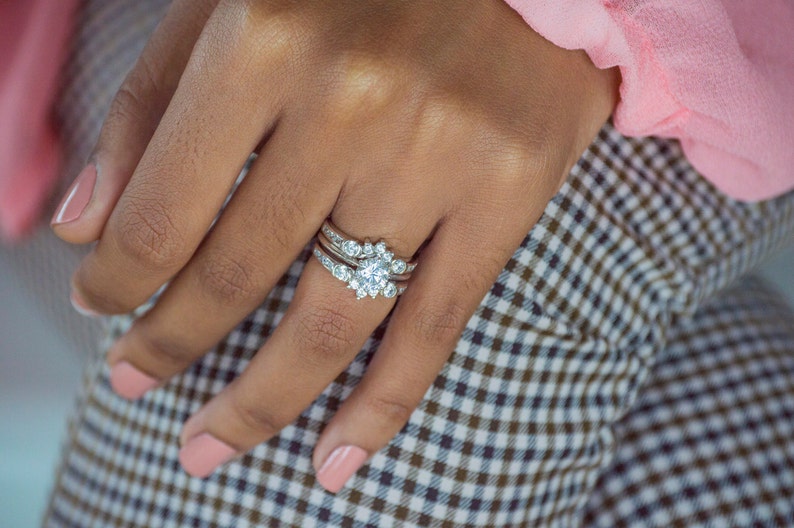 Details About Solitaire Enhancer Diamonds Ring Guard Wrap White Gold Contour Band Halo Style