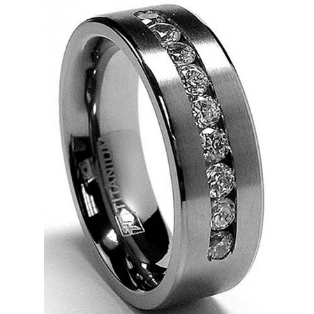 8 Mm Men S Titanium Ring Wedding Band With 9 Large Channel Set Cubic Zirconia Cz Sizes 6 To 15