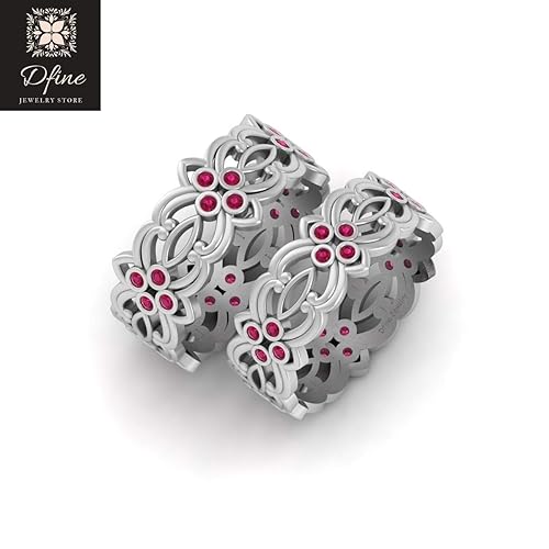 Pink Cz Lesbian Couple Rings Matching Celtic Wedding Band Set For