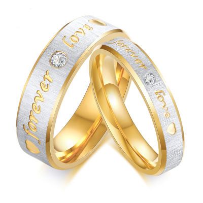 Gold Forever Love Wedding Rings Couple Eternity Engagement Heart And Crystal Men Women Ring In Stainless Steel