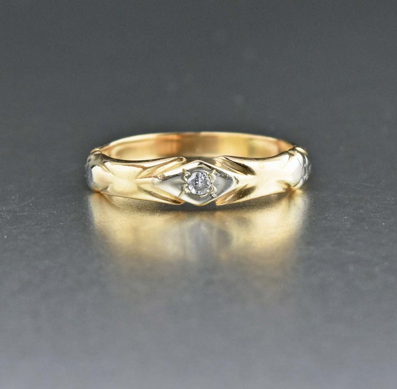 H1912 18k Yellow White Gold Wedding Band Vintage Men S Wedding Ring
