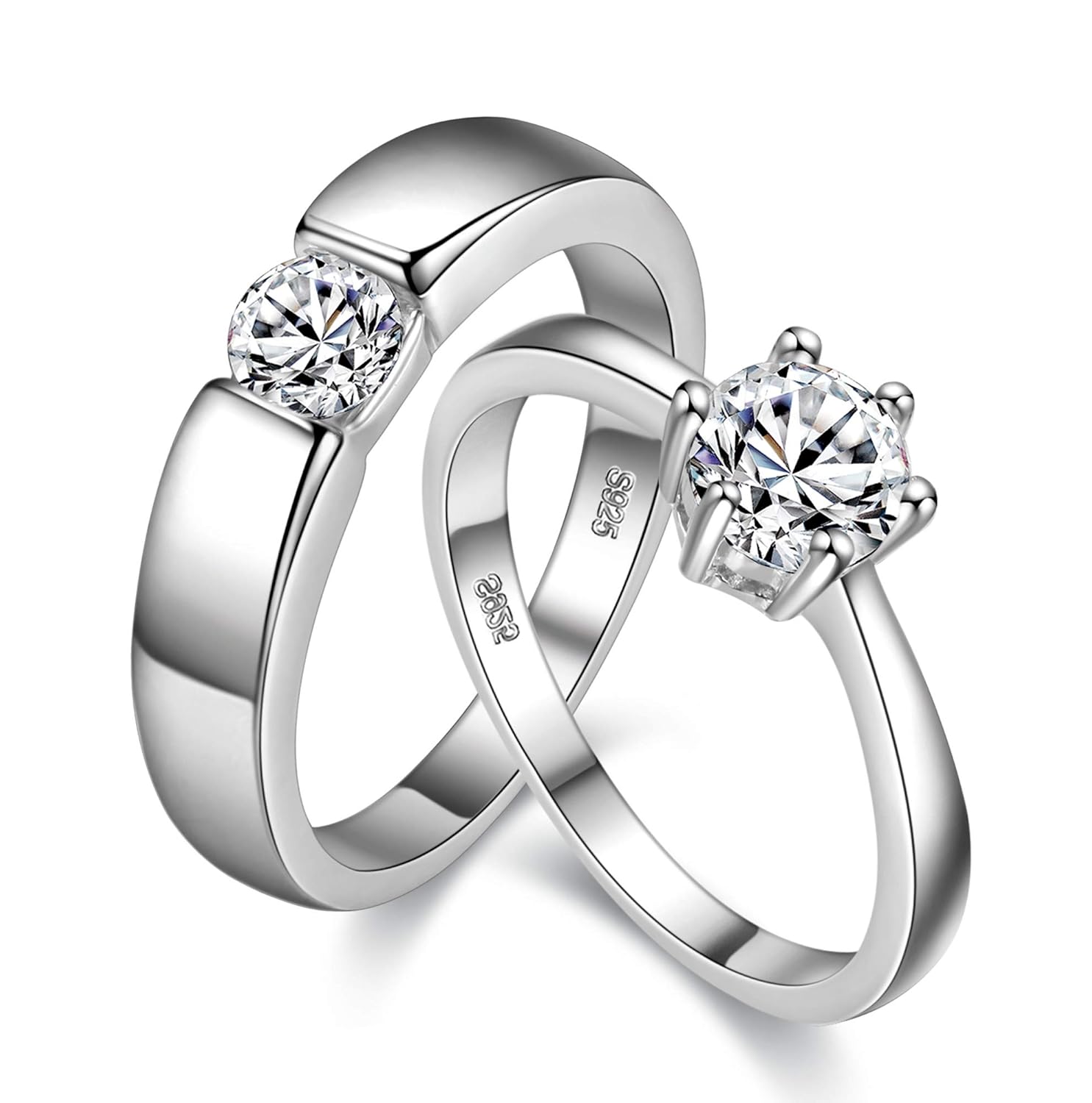 Uloveido 1 Pair Wedding Engagement Couple Ring Set For Women And Men Anniversary Promise Ring Set In Silver Color For Boyfriend And Girlfriend J002