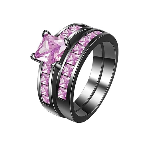 Fashion Engagement Wedding Ring Set 10kt Black Gold Filled With Inlay Squaer Purple Simulated Diamond Cz Ring Girl