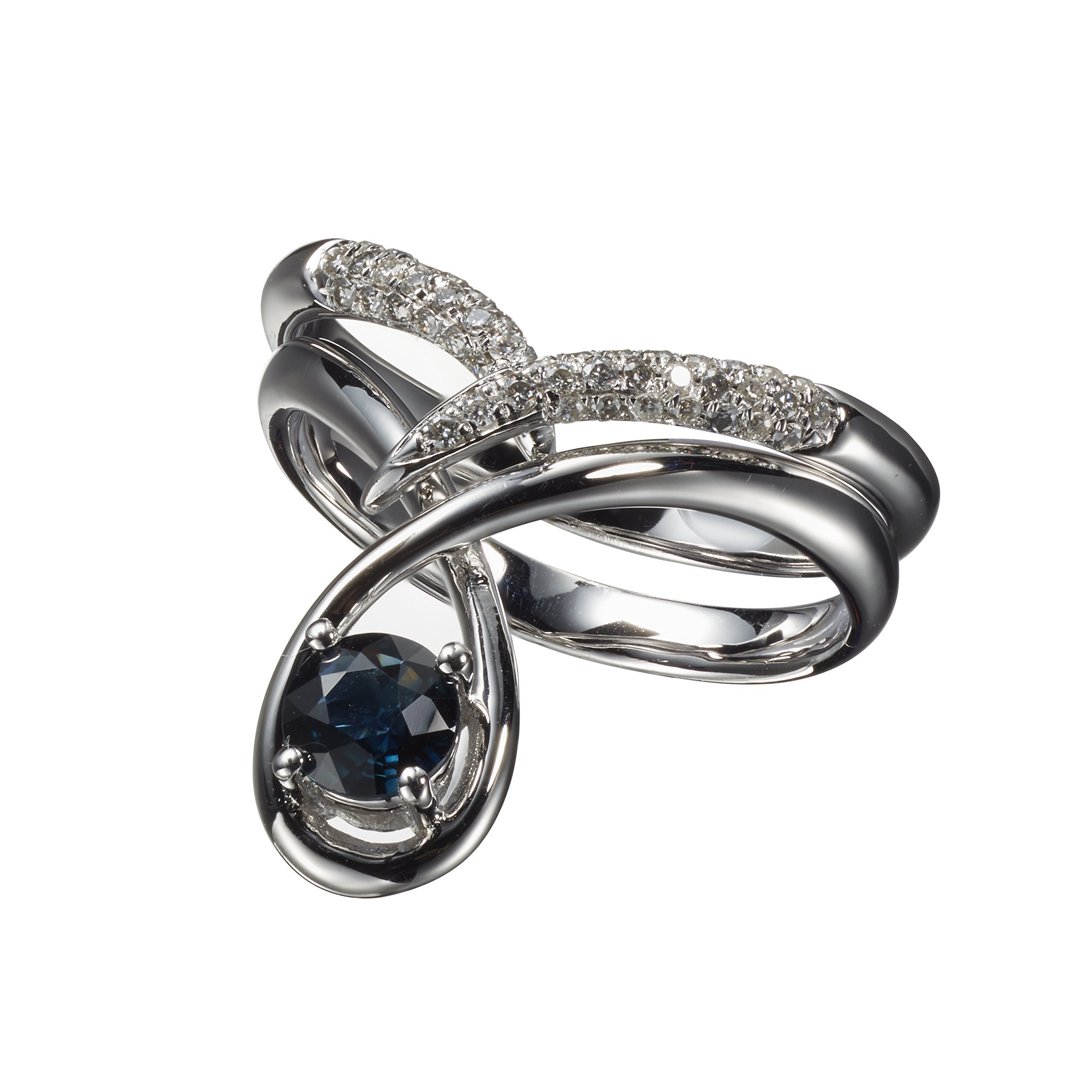 Blue Sapphire Engagement Ring And Bezel Scalloped Diamond Wedding