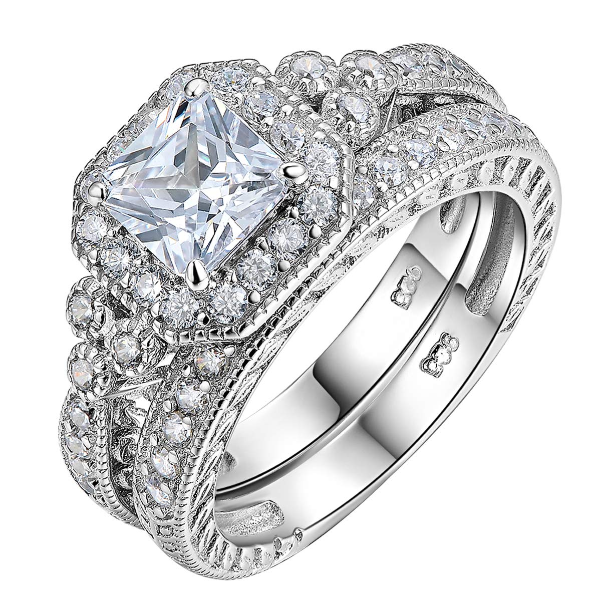 Whether you are after that perfect diamond engagement ring a wedding ring for your big day or you are simply looking for a stylish ring to accessorize and complete your look we have the perfect ring for you. Perfect as an everyday option our range of sterling silver rings can be worn solo or stacked together to create a modern edgy style. 925 sterling silver princess cut crystals accent love forever eternity engagement wedding ring set for women teenage girls size uk m j l k n p q r o s with gift box ideal gift for christmas.