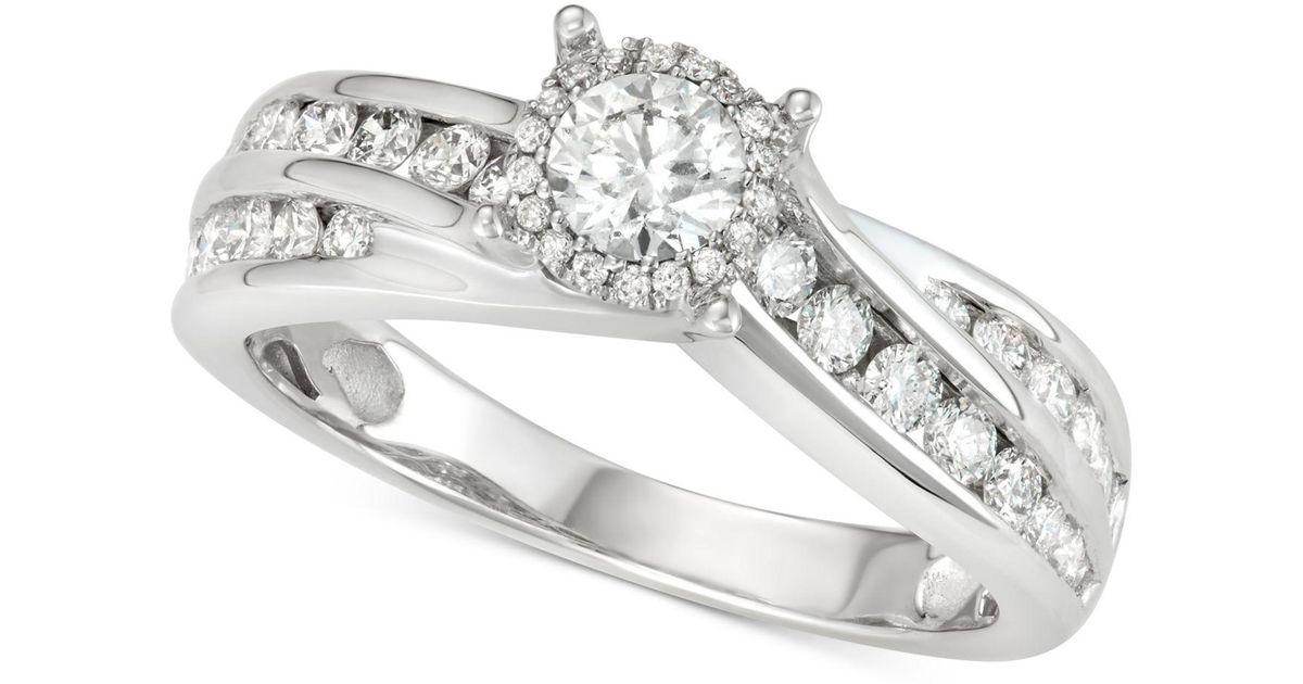 Macy S Metallic Diamond Channel Set Swirl Engagement Ring 1 Ct T W In 14k White Gold