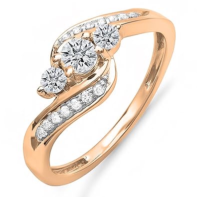 0 50 Carat Ctw 10k Gold Round Diamond Ladies Swirl Engagement 3 Stone Bridal Ring 1 2 Ct