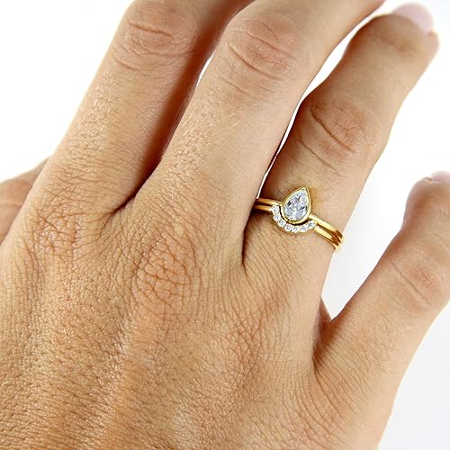 Pear Cut Engagement Ring With A Pave Curved Ring Bridal Wedding Set Wedding Ring Set Pear Rings Set Pave Curved Ring Teardrop Ring Set