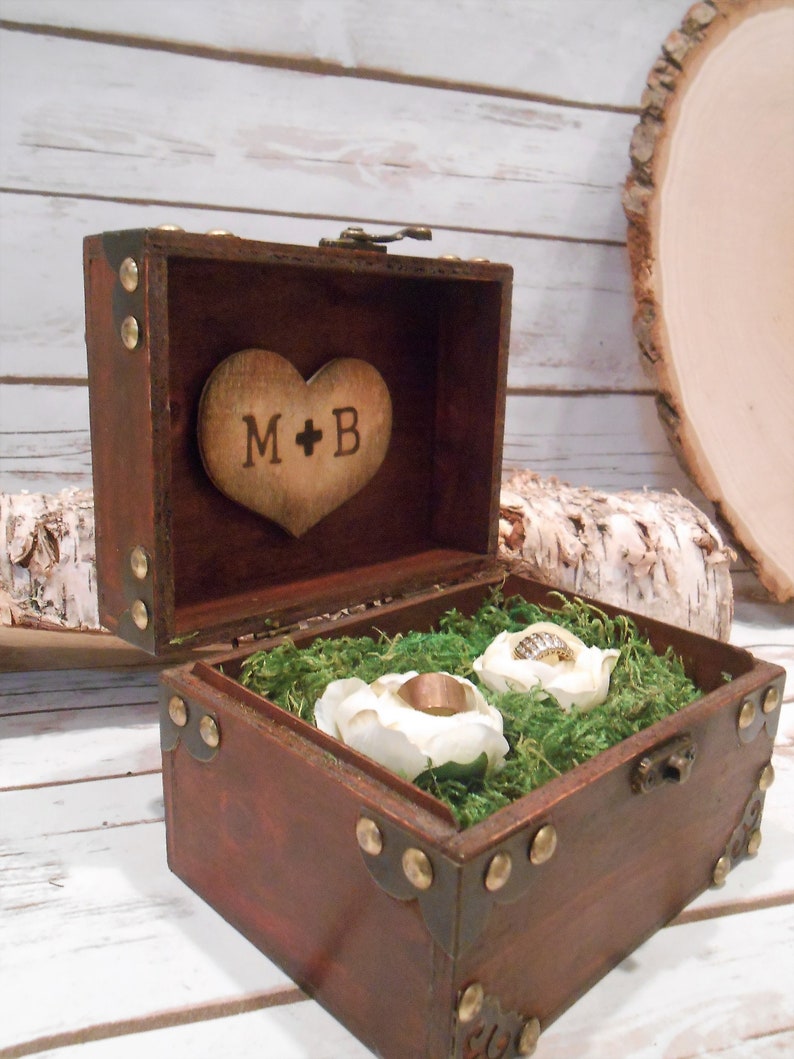 Custom Wooden Wedding Ring Box Ceremony Woodland Personalized Ring Box Personalized Box Wedding Ring Bearer Outdoor Wedding