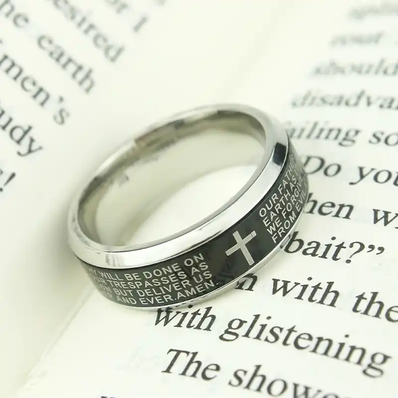 High Quality 8mm Jesus Cross Rings Letter Bible Wedding Band Ring Wedding Engagement Finger Ring Men Women