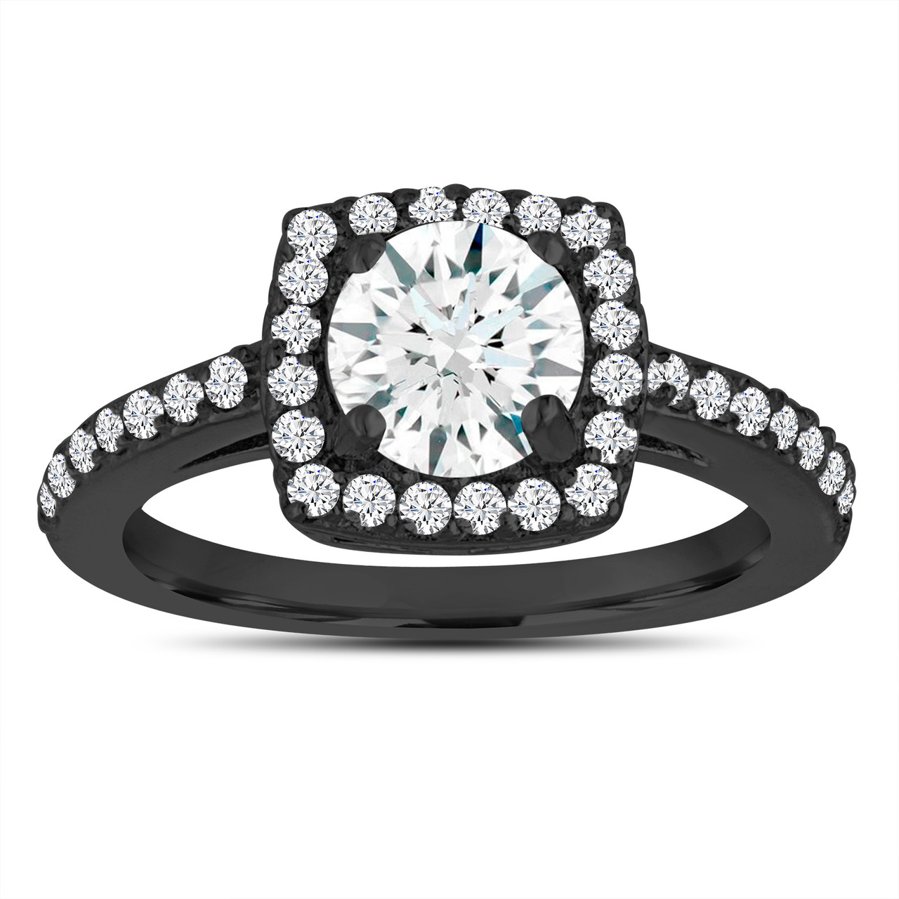 White Sapphire Engagement Ring Wedding Ring 14k Black Gold Vintage Style 1 38 Carat Certified Pave Halo Handmade