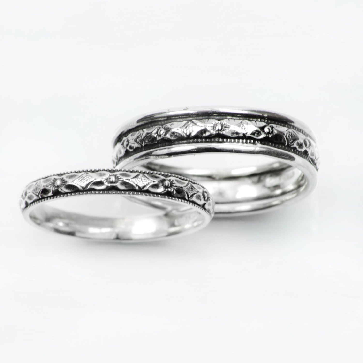 Amazon Com Art Deco Inspired Narrow And Wide Wedding Rings