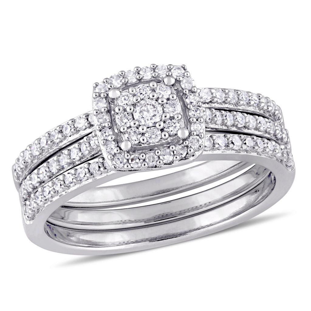 Julianna B 14k White Gold 0 49ctw Round Diamond Halo 3 Piece Bridal Ring Set