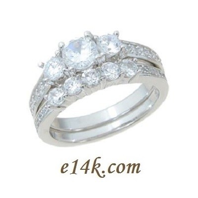 3 Stone Trilogy Engagement Ring And Wedding Band Set In White Gold