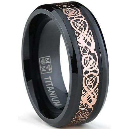 8mm Men S Black Titanium Wedding Band Ring With Pink Celtic Dragon Inlay Comfort Fit