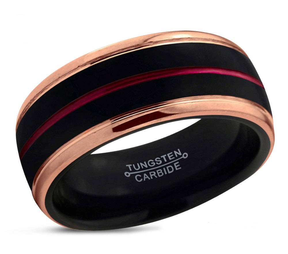 Black Tungsten Ring Rose Gold Wedding Band 8mm 18k Red