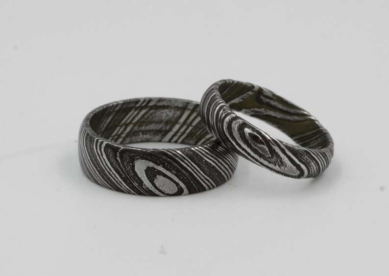 Wedding Ring Set Damascus Steel Ring Matching Bands Damascus Dome Band Plain Wedding Band