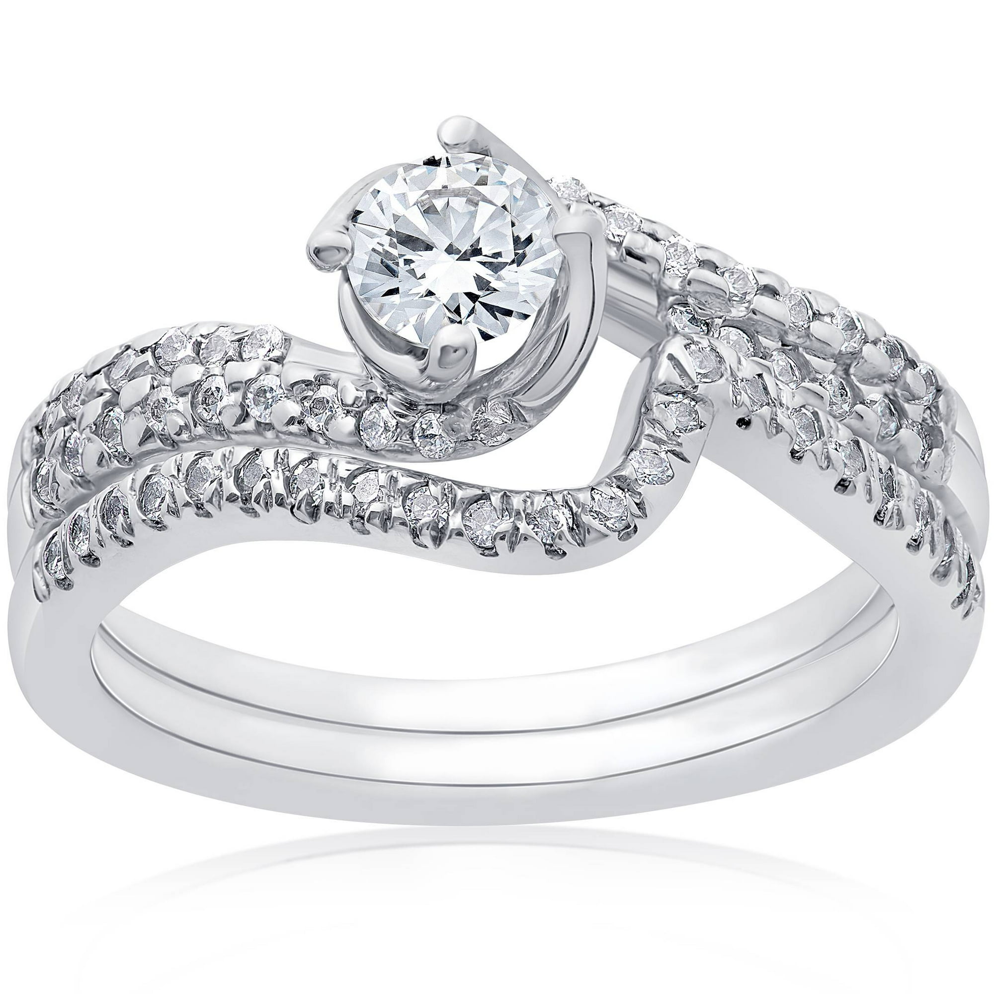 14k White Gold 5 8ct Tdw Diamond Halo Engagement Ring Matching Wedding Band Vintage Filigree Set I J I2 I3