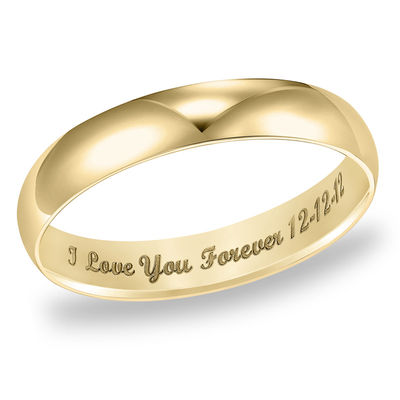 Men S 4 0mm Engraved Low Dome Wedding Band In 14k Gold 25 Characters Zales