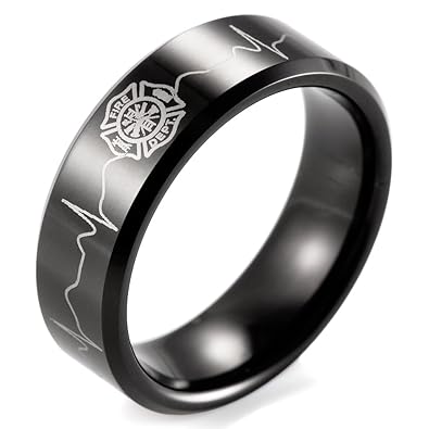 Shardon Men S 8mm Black Beveled Tungsten Ring Engraved Firefighter Shield Ekg