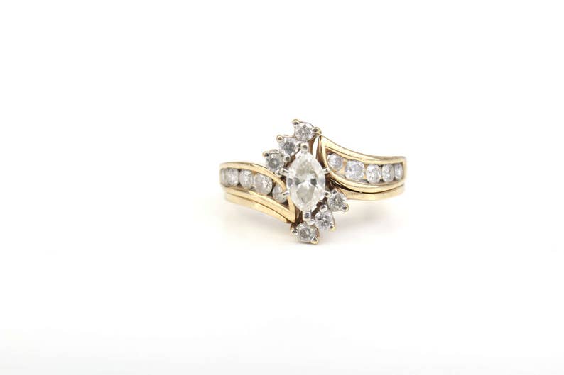 14kt Yellow Gold Marquise And Round Diamond Wedding Set
