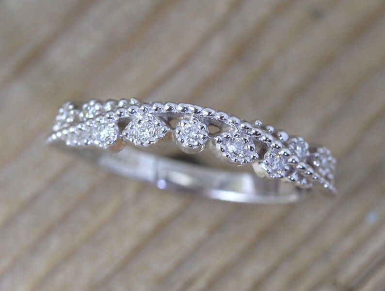 Diamond Filigree Wedding Band Milgrain Wedding Ring Diamond Filigree Ring Antique Filigree Vintage Filigree Eternity Band Promise Ring