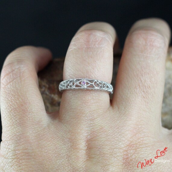 Pink Sapphire Band Filigree Wedding Band Milgrain Wedding Bands Pink Wedding Band Engagement Ring Custom Made Anniversary Swirl Design