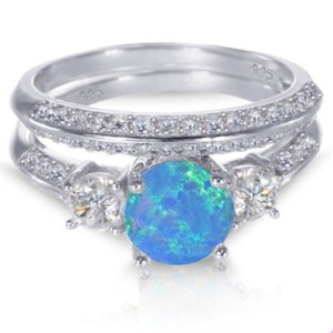 Details About White Gold Sterling Silver Round Blue Fire Opal Wedding Engagement Cz Ring Set