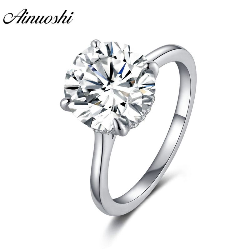 Ainoushi 925 Sterling Silver Engagement Ring For Women 4 Carats Halo Solitaire Rings Anniversary Gift Jewelry Anillo Mujer Plata