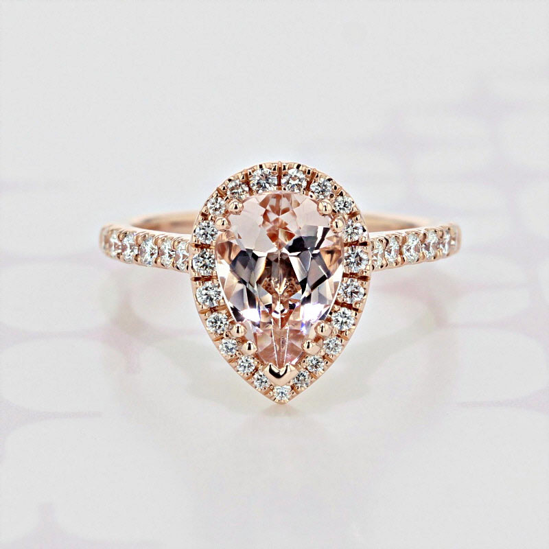 Halo Pear Shape Morganite Engagement Ring 2006054