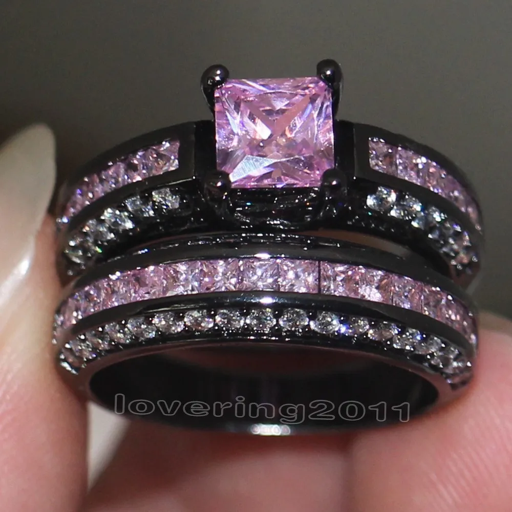 Us 14 95 32 Off Choucong Jewelry Brand Design Pink Aaa Cz Simulated Stones 10kt Black Gold Filled Engagement Wedding Band Ring Set Sz 5 11 Gift In