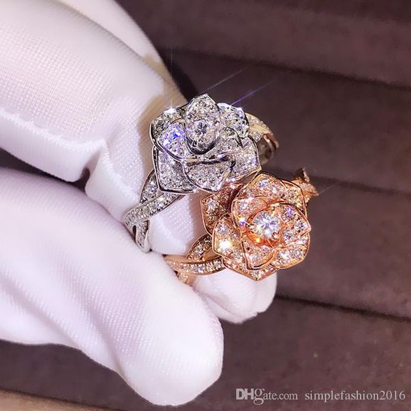 2019 Big Rose Flower Ring Cute Boho Female Silver Rose Gold Engagement Ring Vintage Party Wedding Band Rings For Women From Jewelrystore999 20 11