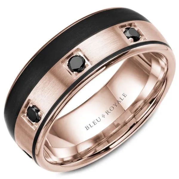 Crown Ring Bleu Royale Collection Rose Gold And Black Diamond Wedding Band