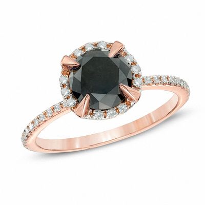 2 Ct T W Enhanced Black And White Diamond Frame Engagement Ring In 10k Rose Gold Zales