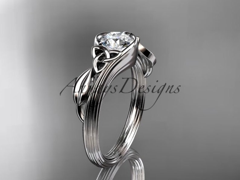 Unique Celtic Engagement Ring 14k White Gold Wedding Ring Celtic Trinity Knot Ring White Sapphire Engagement Ring Celtic Ring Women