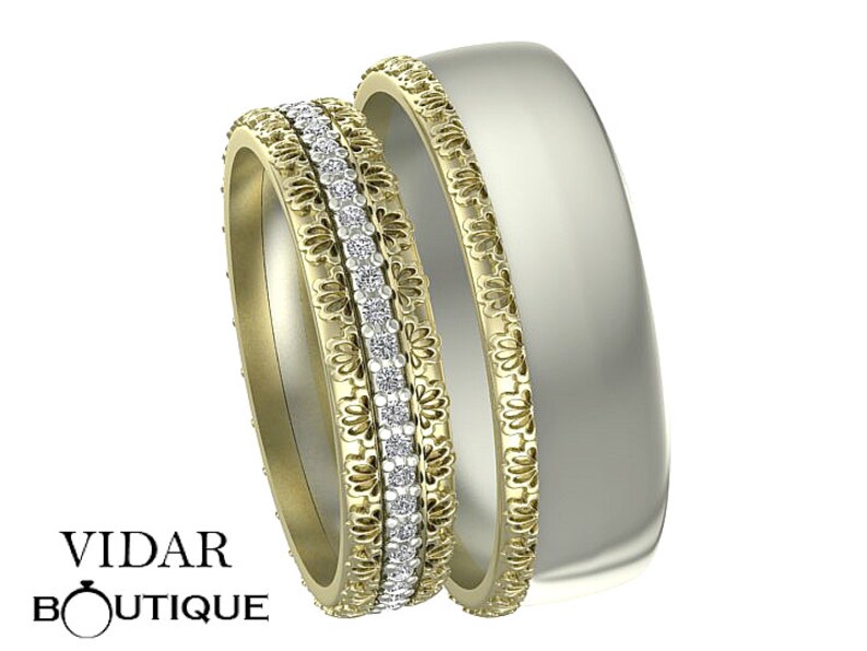 His And Hers Wedding Bands Matching Wedding Band Set Diamond Wedding Band Set Unique Matching Bands Unique Couple Ring Set