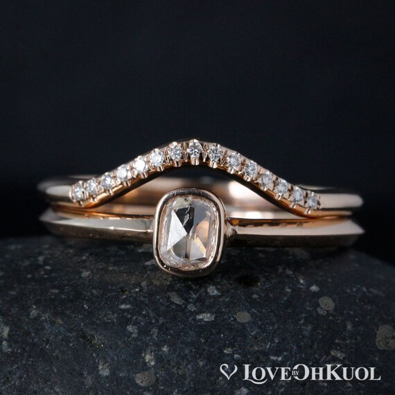 Rose Cut Diamond Ring Rectangular Diamond Curved Wedding Band Wedding Set