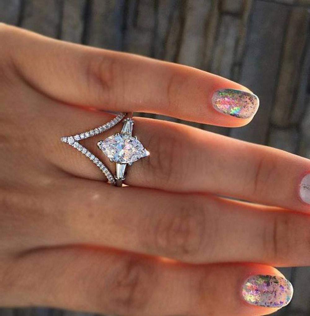 Amazon Com Barhalk Zircon Wedding Band Ring Silver White Oval Ring
