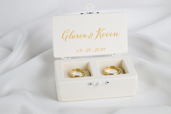 Ivory Ring Box Wedding Ceremony Ring Box Ring Bearer Box Personalized Wedding Ring Holder