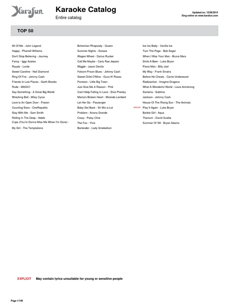 Karaoke Catalog