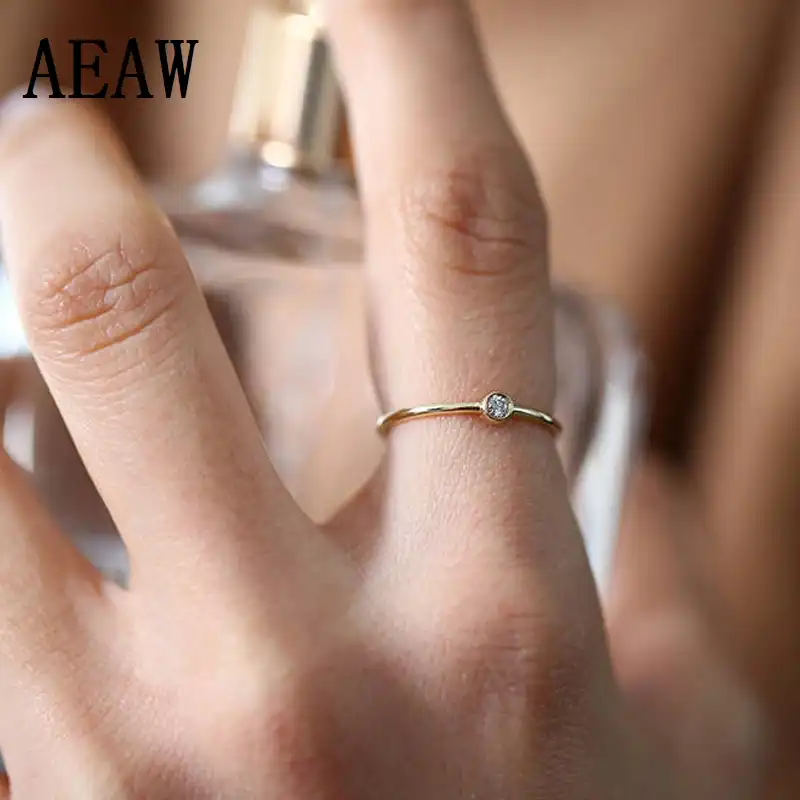 Tiny Small 2 5mm 0 05ctw Diamond Solitaire Ring Thin Gold Band Ring 14k White Rose Yellow Gold