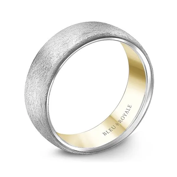Brushed Beveled Edge Wedding Ring In 14k White And Yellow Gold 7mm