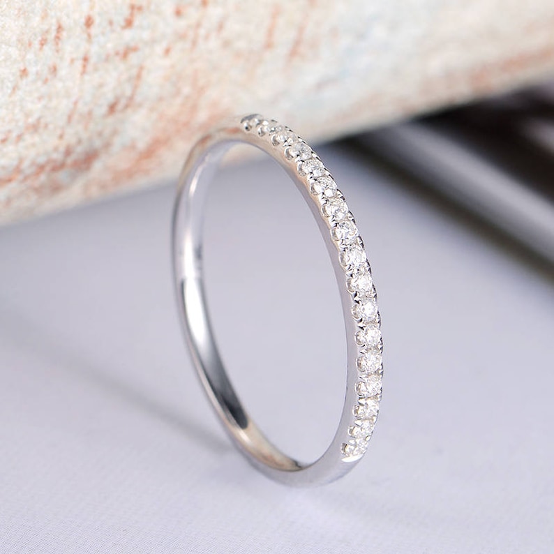 Wedding Band Women Moissanite White Gold Half Eternity Band Dainty Minimalist Stacking Matching Bands Simple Bridal Engagement Promise