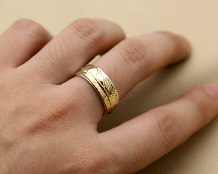 Us 21 2 Vintage Indian Style Rings Men Women 100 Solid 925 Sterling Silver Jewelry Golden Feather Band Simple Brief 925 Mens Jewelry In Rings From